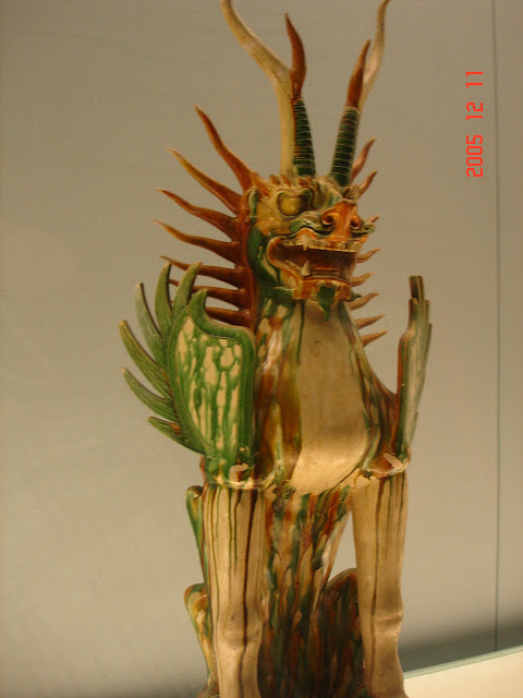 In Chinese mythology this is one of the guardians of heaven - or what is loosely translated as “heaven” in a culture that thankfully does not have such crazy ideas.  I’ve never seen any pictures of the soon-to-be-if-not-already mythological Christian gate-keeper, Saint Peter, but something tells me he doesn’t have the same ability to put the fear of god into you (pun intended) as this creature does. If you want to see what it looks like while guarding heaven, somehow highlight the photo so you’re seeing the color negative (impossible with blogger at the moment, but in Paint or Word it is.).  Be careful though, some of you may have nightmares.